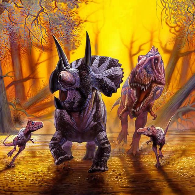 “霸王龙来了!霸王龙来了!”大家一边喊,一边逃。