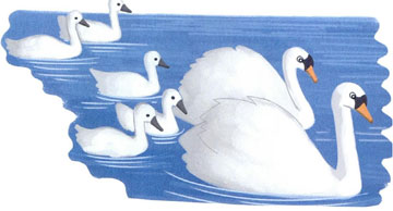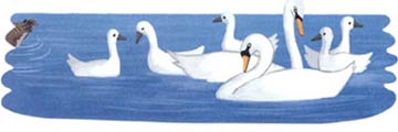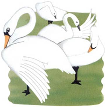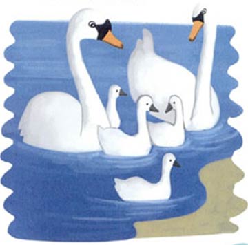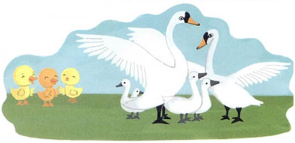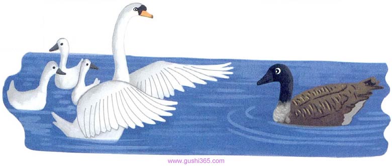 大家都站在远处称赞:”天鹅一家真是既优雅又勇敢。“