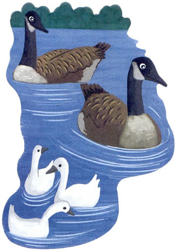 野鸭灰溜溜地远离了天鹅宝宝,湖面恢复了平静。