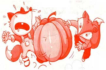 天气渐渐转凉了,阿红想:“我得把南瓜摘回家。”正巧,阿黑也决定在这一天去摘南瓜。两只小狐狸在篱笆墙下相遇了。