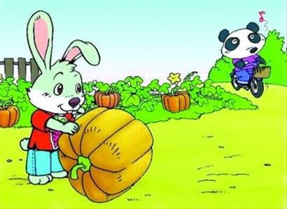 小白兔马上就有了主意,它就连蹦带跳地到了以前它和种的那片南瓜地,摘了一个又大又黄的南瓜,它就想把南瓜运回家,可是小白兔用了九牛二虎之力也没能把这个南瓜搬起来,于是它就坐在地上想呀想呀,突然它看见了它的好朋友小刺猬正在向它家滚去,小白兔立刻想到一个好主意:小刺猬卷成一,就能滚,那南瓜是圆的,它一定也能滚。小白兔叫住了小刺猬,它们俩一起把南瓜竖了起来,然后推着南瓜往小白兔家滚去。