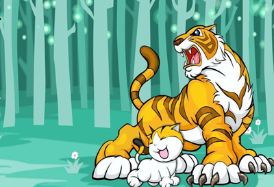 两只虎大王懒洋洋地趴在地上,看着动物们忙来忙去的,自己却悠闲极了。小狐狸聪聪说:“虎大王平时一吼,树木都会颤动。今天让两位虎大王吼一下,看看谁厉害不就知道了。”“好!”“好!”大家都纷纷同意了。