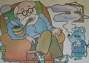 老爷爷有个心的烟斗,他老是用它烟。老爷爷“吱—吱—“地吸,再”呼—“地吐出来,房子里都是烟雾。住在老爷爷俩里家里的小老鼠,也被呛出了眼泪。