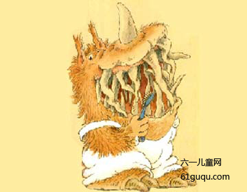 这时,咕吧正睡得香呢。忽然,他感觉牙有点痛。哎哟,哎哟,一跳一跳地痛。他随手揪起一根树枝,塞进牙齿里搅动起来。