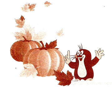 没走多久,鼹鼠的眼前不由得一亮,一个好大好大的南瓜啊,他还 从来没有见过这么大的南瓜呢。这不正是自己要找的东西吗?鼹鼠试着搬了搬南瓜,可是南瓜竟然一动也不动。一个奇特的念头在鼹鼠脑子里闪现,他要在这南瓜上挖一个向东的窗户,然后把这个南瓜房子送给他的鼠小弟。那样鼠小弟每天早晨都可以欣赏到美丽的朝霞。想到这里鼹鼠赶紧回家休息,打算第二天天不亮就来建造这座南瓜屋。