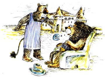 “你去河边钓鱼,把帽子丢在了那里。我看你更不记得星期天是什么日子了!”狮子太太说。
