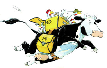 这天早上,他终于想到一个好主意。“要是我给那头一奶一牛也送一个包裹的话……”邮递员心想,“说不定她就会喜欢我了。”