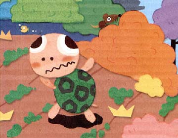 小乌龟生活在河流边的一个小菜园里。一天,它正看着河马在河里嬉水,突然听到“嗵!嗵!嗵!”的脚步声。小乌龟很害怕,赶紧躲了起来。“什么声音真可怕!”
