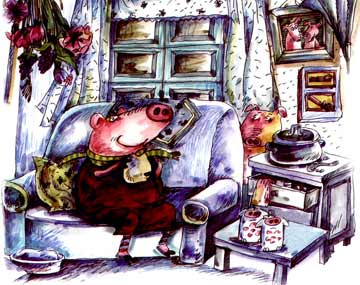 猪一妈一妈一回来了,她一眼就看到了地上摔烂的泥巴猪。可桌子上怎么还 有两个小白猪?