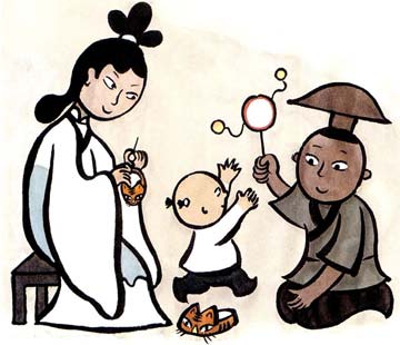 “快,快把他们捉住!”县令大喊。眼看县令就要追上来了。姑一娘一脱一下小宝的虎头鞋,往后扔去……