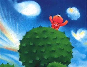 哼哧!哼哧!口袋熊开始爬树,好不容易爬上树梢,咦!那些云还 在好高好远的地方。