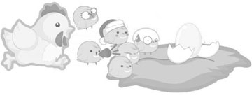 “好好好,”鸡指着最后一个蛋,对他们说,“等弟弟出来以后,就带你们去找食吃。”