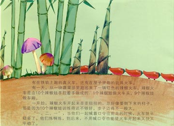 一开始,辣椒火车开起来歪歪扭扭的,总好像要倒下来的样子。那是因为10个辣椒娃训练得还 不够好,步子迈得不一般大。