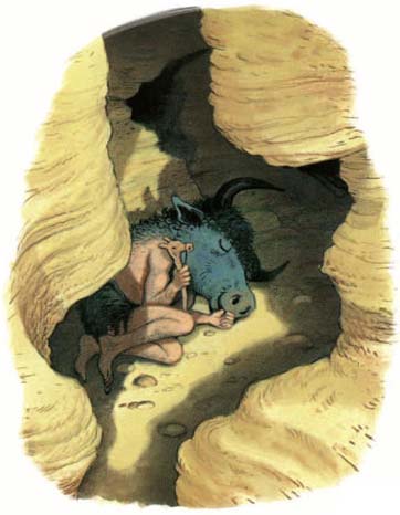 在迷宫地下的深处,牛头人柔地紧紧握住从天而降的礼物,沉沉地睡着了。
