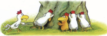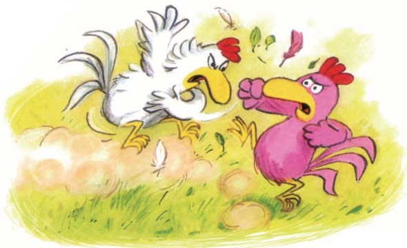 “哦,不!绝不是那么回事!你们搞错了!是,我们偶尔是会小打小闹一下,但……那是因为……因为……因为……”小公鸡们算是解释不清到底为什么他们喜欢打架了。