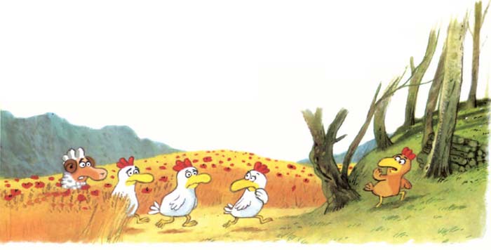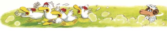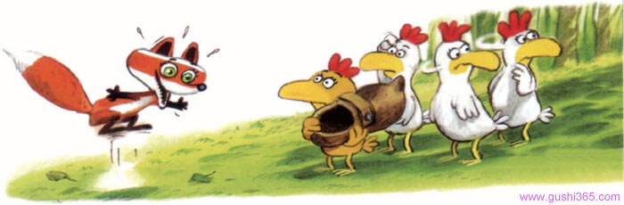 “快逃命呀!”小母鸡们边喊边以最快的速度向鸡舍逃去。
