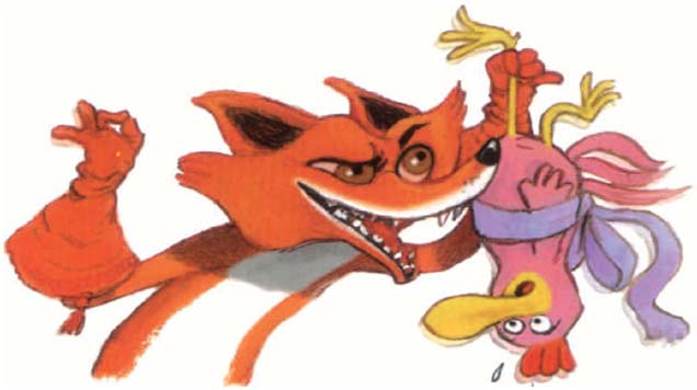 小狐狸对她的“坐骑”说:“跑起来吧!卡罗!我必须带只公鸡回家,否则哥哥们会嘲笑我的。嗯,一只公鸡!我必须在天黑之前抓只公鸡!只要我一发现猎物,卡罗,我就会悄无声息地靠近他,然后再……向他扑去!