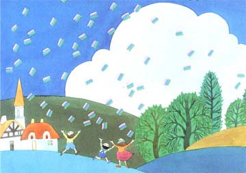 她把剪下的尾巴抛向空中。天空中顿时下起一场亮晶晶的流星雨,流星雨掉进很多盲孩子的眼睛里,他们惊喜地大叫:“我能看见星星了……”