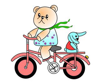 第二天一大早,小狐狸就催大狐狸去找熊爸爸借自行车。