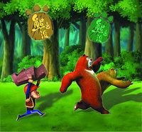 熊宝宝开心地大叫:“哇,我跟着你学钓鱼,我跟着你学钓鱼,我做你的徒弟啦。”