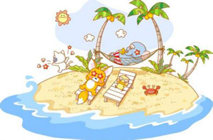 大海真美呀!成群的海鸟在天上自由自在地飞翔。碧蓝的海水中,鱼儿嬉戏着,向他们游来。他们坐在海边看了日出,又看日落。他们说着笑着,唱着跳着,真开心呀!
