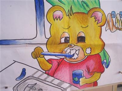 笨笨熊一早起来,跑到卫生间刷牙,“呀——”一张嘴,发现门牙掉了一颗。“天哪,”笨笨熊一下子捂上了嘴巴。
