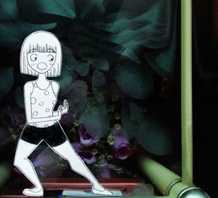 老鼠捉住米米,带进了地下的家,轻轻地放在地上,要米米跳舞给它的孩子们看。米米心里虽然不愿意,但为了寻找机会逃跑,还 是硬着头皮跳起了舞。小老鼠们看得高兴极了,争着冲上来玩,米米被小老鼠们吹来吹去,一会儿飞起来,脑袋撞在天花板上,一会儿被挤压得气也透不过来。突然,米米发现天花板上有一个半开着的天窗,心里一阵高兴,趁小老鼠们再一次把它吹上天花板,敏捷地一跳,跳出了天窗。