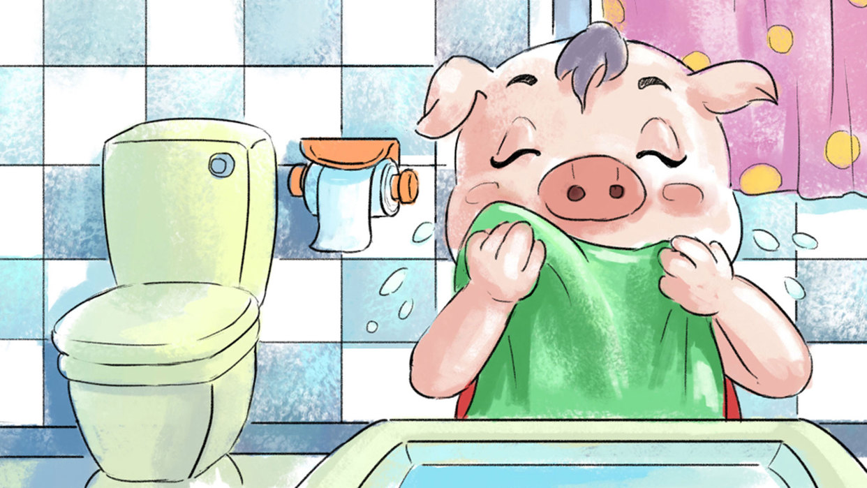 小猪的生日到了,小兔送给它一面镜子,让它每天都照一照自己的脸。不干净就洗,洗干净为止。