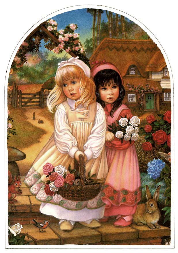 她们俩姊妹情深,常一起出去,总是手拉着手。白雪总是说:“我们不要分开。”红玫则说:“只要我们活着,就不会分开。”然后母亲会加上一句:“有福同享,有难同担。”