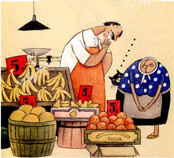 有一天,水果店的老板和太太在聊天,太太看着店里的水果,慢吞吞地说:“虽然水果很好吃,可是要我说啊,树上结的果实中,最好吃的还是核桃!”